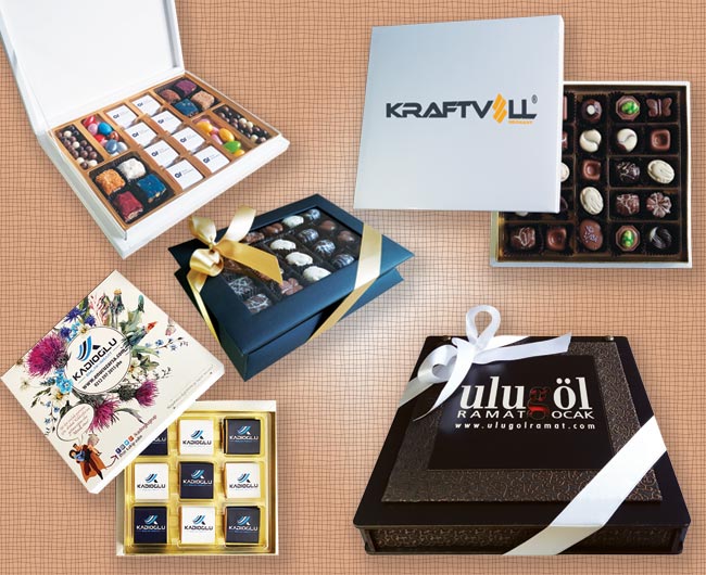 Büyük Karton Kutuda Logolu Çikolata, Draje ve Spesiyal Çikolata